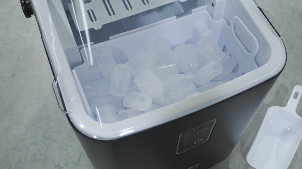 - Ice cube tray and scoop included