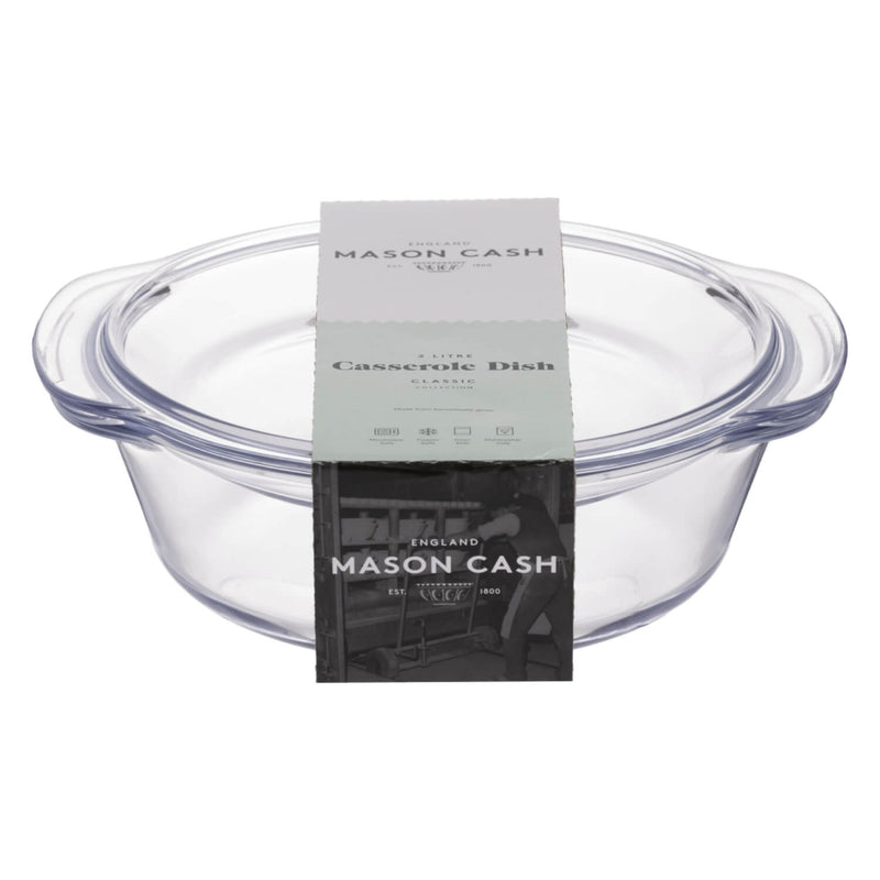 Mason Cash presents the 2 Litre Glass Casserole Dish with lid, part of their Classic Collection. Made from high-quality, tempered, borosilicate glass, providing superior heat performance and durability. The range from Mason Cash covers all essential ovenware pieces for roasting, baking, cooking and serving food.